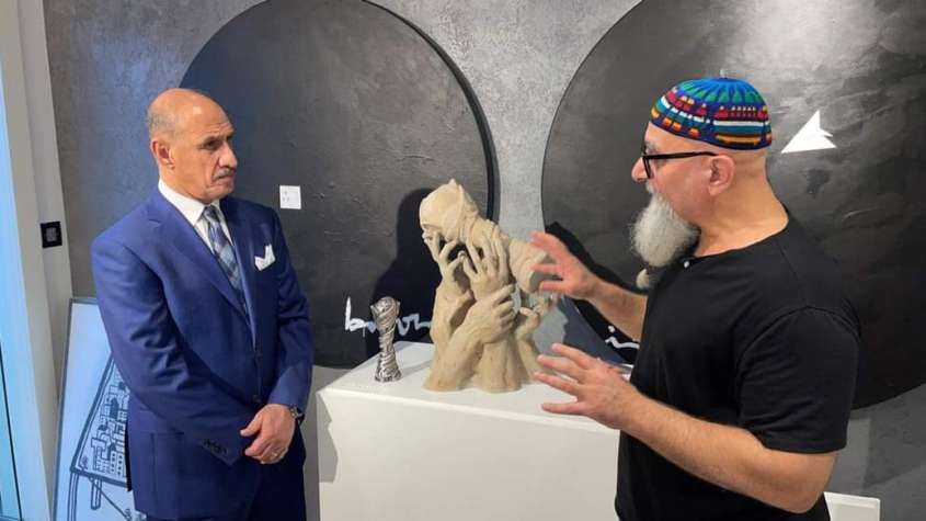 العراق وزير الشباب والرياضة يلتقي في الدوحة النحات العراقي. أحمد البحراني