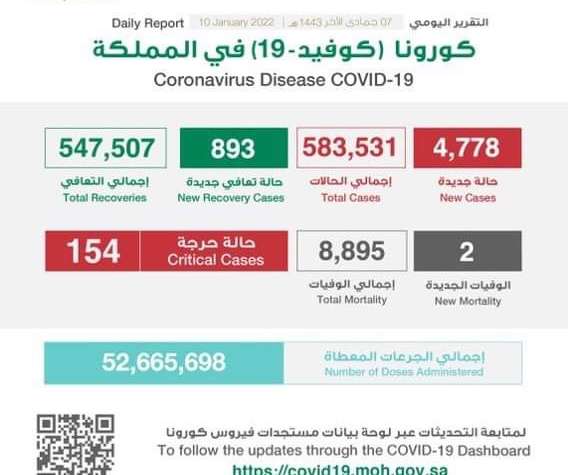 وفيما يخص الوفيات فقد تم تسجيل حالتي وفاة ، حيث وصل إجمالي عدد الوفيات في المملكة (٨٨٩٥) حالة “يرحمهم الله جميعاً”.