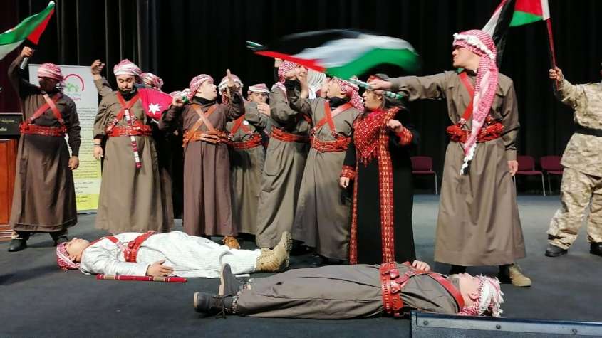 وتضمن الفقرات فنية وثقافية وغنائية واهازيج اردنية وطنية ودبكات تراثية وتوزيع دروع وجوائز على الحضور .