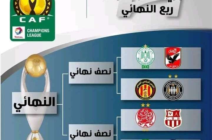 اسفرت قرعة مقابلات الدور الربع نهائي الخاصة برابطة ابطال افريقيا على لقاء سيجمع الترجي الرياضي ونظيره سطيف الجزائري وسبجرة لقاء الذهاب ايام 15و 16و 17افريل القادم فيما سيكون لقاء الاياب ايام 22و 23 و24 افريل ومن جهة اخرى سيواجه الاهلي المصري فريق الرجاء البيضاوي .