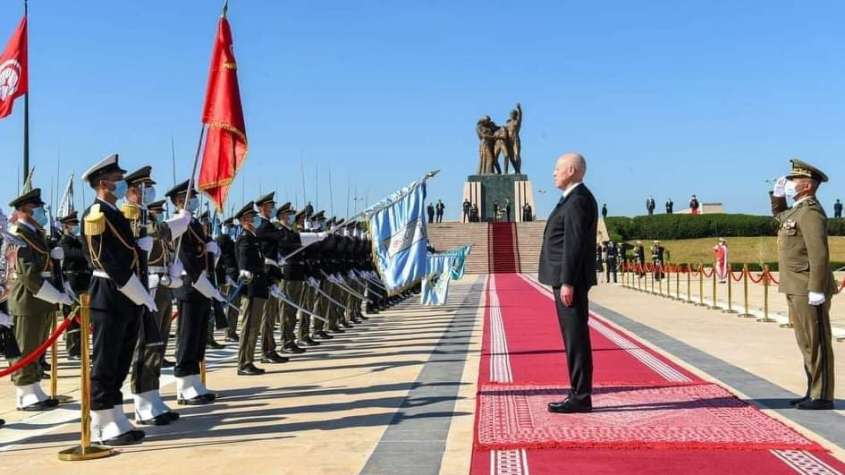 أشرف رئيس الجمهورية قيس سعيد، صباح اليوم السبت 9 أفريل 2022 بروضة الشهداء بالسيجومي بتونس العاصمة، على موكب إحياء الذكرى الرابعة والثمانين لعيد الشهداء.