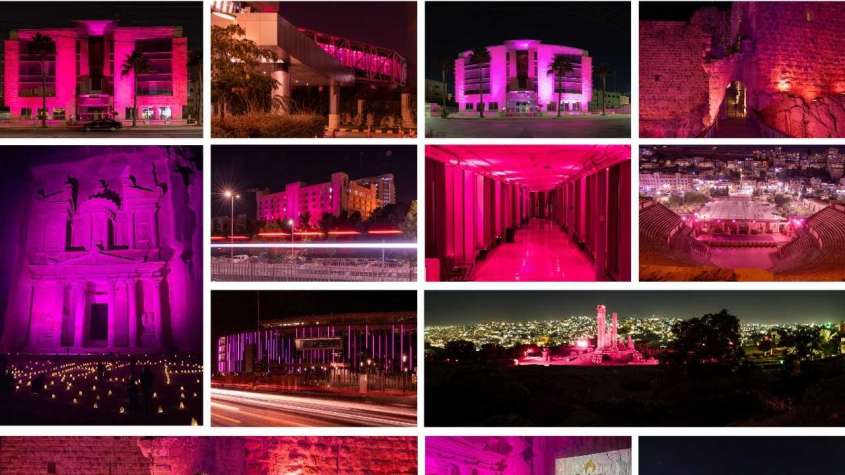معالم اردنية تتزين باللون الوردي في شهر التوعية.. بسرطان الثدي