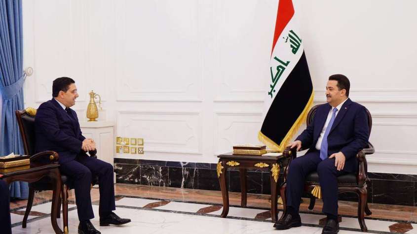 رئيس مجلس الوزراء العراقي محمد شياع السوداني. يستقبل وزير الشؤون الخارجية والتعاون الأفريقي في المغرب