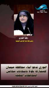 دعت عضو مجلس النواب العراقي رئيس كتلة تيار الفراتين رقية النوري اليوم الاربعاء ابناء محافظة ميسان الى المشاركة وبقوة في انتخابات مجالس المحافظات المقبلة .