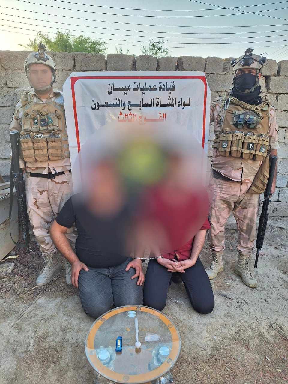 وفي السياق ذاته قوة من الفوج الثالث لواء المشاة السابع والتسعون التابع لقيادة العمليات وبالإشتراك مع مفرزة من مكافحة مخدرات ميسان وأثناء البحث والتفتيش ، القاء القبض على متهمين بحوزتهم “مادة الكرستال” المخدرة + انبوبة زجاجية تستخدم لتعاطي المخدرات ومصادرة عددً من الأسلحة والاعتدة المختلفة في ناحية العزير.