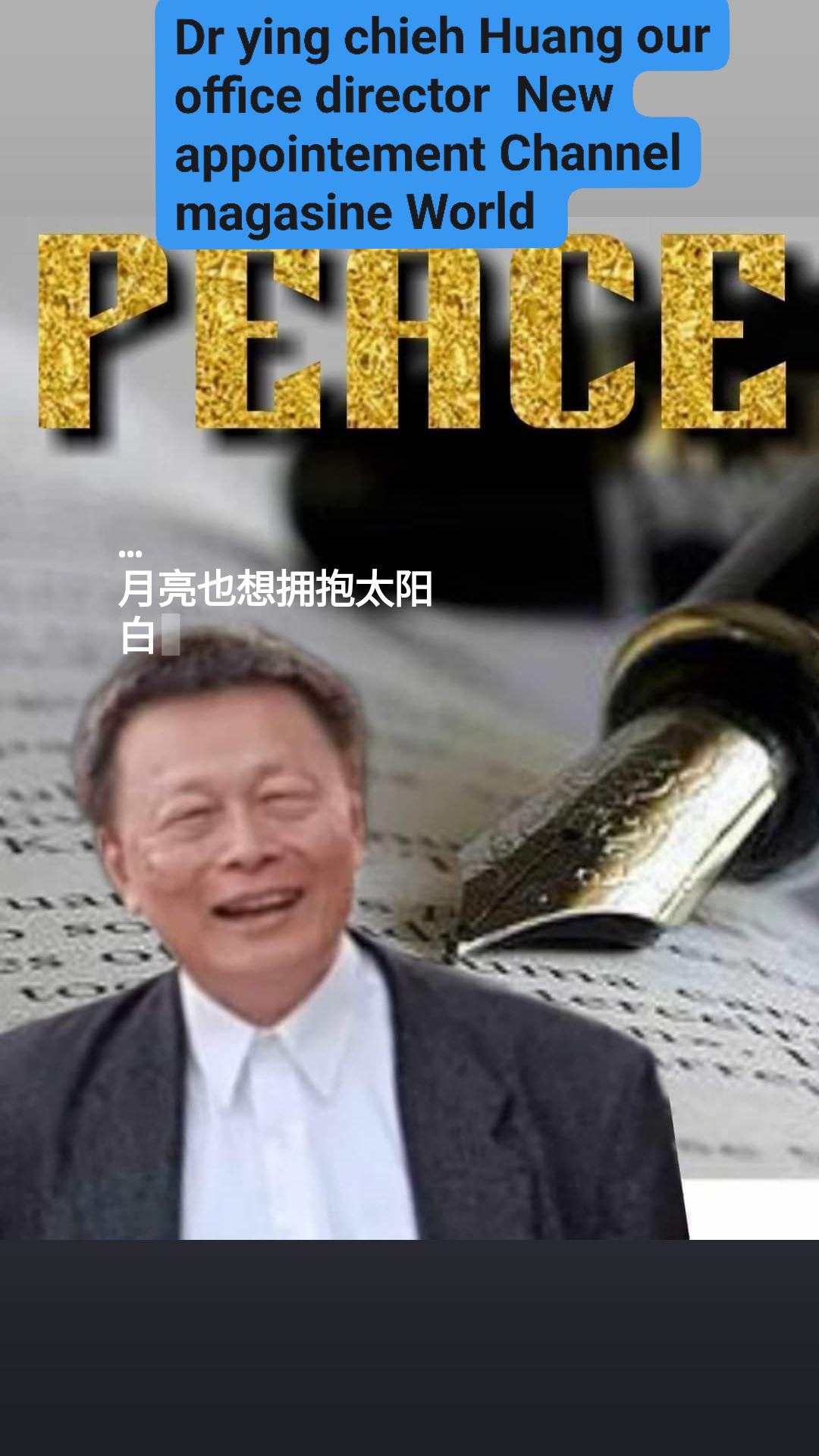 الرئيسية Around the world Our office director in china Taiwan Dr ying chieh Huang //call on the leaders of china and Taiwan to join forces to promote thé Idea of World integreate administration