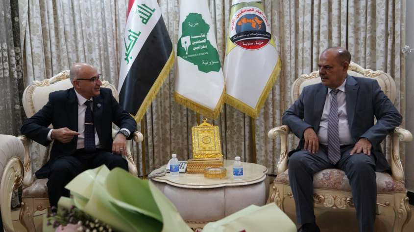 رئيس جامعة بغداد ونقيب الصحفيين العراقيين يتنافشان دعم الاسرة الصحفية لتاسيس كلية الذكاء الاصطناعي