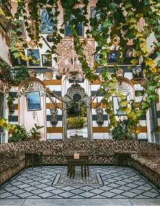 المنزل الذي يعكس بتصميمه البيئة الدمشقية التقليدية، بطرازه المتماشي مع الطابع العربي الإسلامي الكلاسيكي مع لمسات عصرية، ويحتوي على تفاصيل دقيقة في زخارفه وتكويناته.