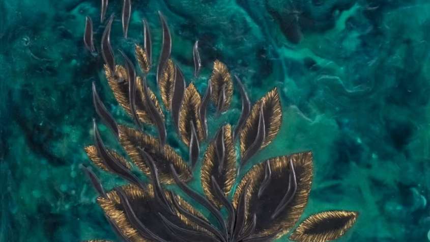 ورقةٌ خضراء تتحرّك مع التيار، تتبدّل ألوانها، وتتجه إلى مصيرها دون أن تقاوم. هكذا تلهمنا هذه اللوحة؛ لحظة تأملٍ في فكرة الانسياب عبر الزمن، وكيف تجرفنا السنوات ببطءٍ ناعم لا نشعر به، حتى نكتشف فجأة أننا قد عبرنا ضفافًا كثيرة، وتركنا وراءنا محطاتٍ لم نلتفت إليها إلا حين ابتعدت.