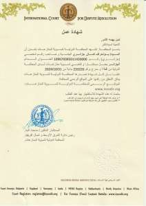 الرئيسية Around the world المحكمة الدولية لتسوية المنازعات انكودر ومقرها الرئيسي انجلترا لندن/ شهادة العمل و الإعتماد المهني للسيد بولحراف كمال الجزائري … كمستشار وقاضي تسوية منازعات