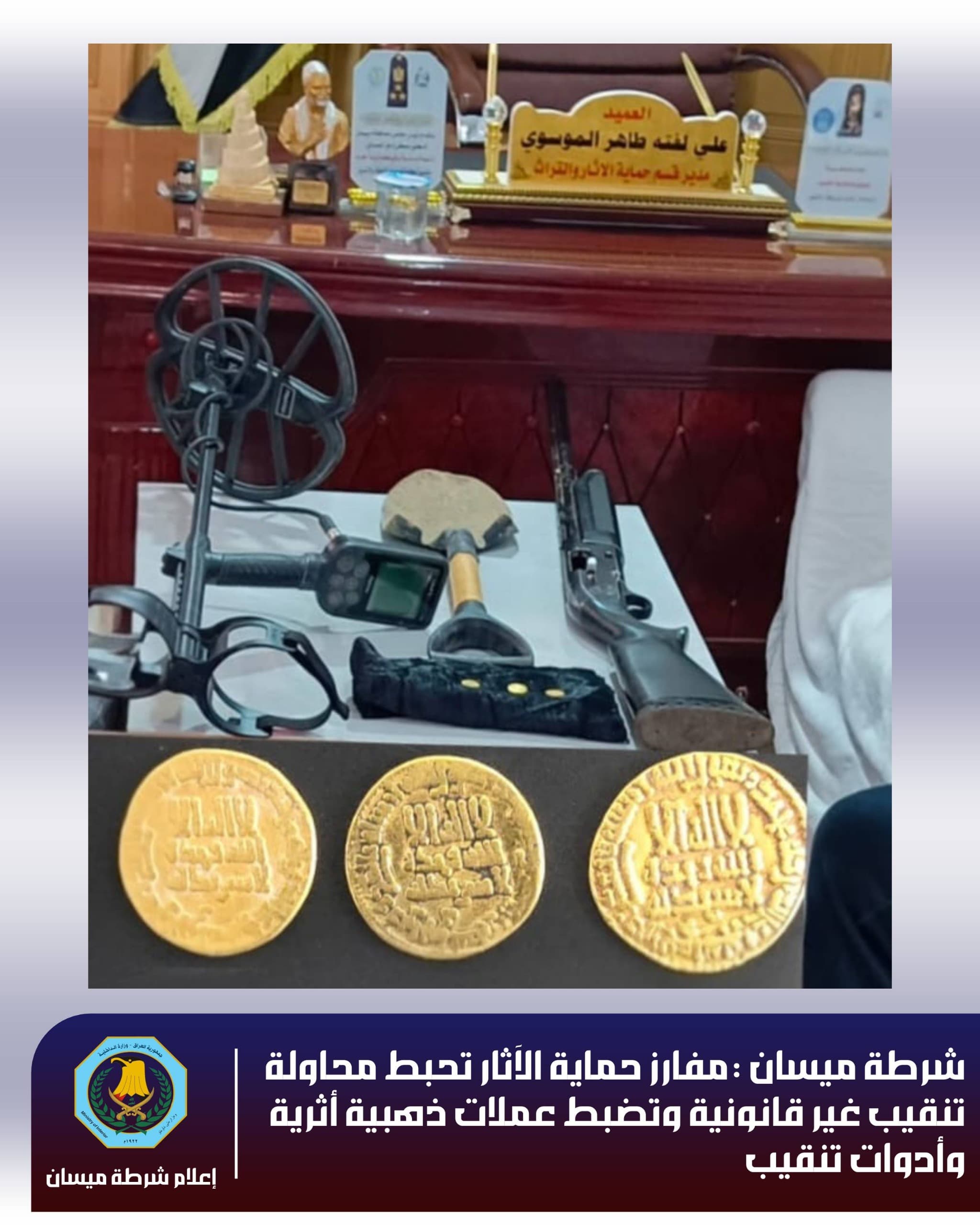 وأكدت قيادة شرطة ميسان استمرار الجهود الأمنية لحماية الإرث الحضاري والتاريخي، مع دعوة المواطنين إلى التعاون والإبلاغ عن أي حالات مشبوهة حفاظاً على آثار البلاد.