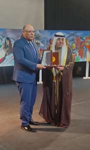 العهد معالى الشيخ صباح الخالد الصباح ورئيس مجلس الوزراء، الشيخ أحمد الصباح وشكرهم على حسن الضيافه واتاحه الفرصه للفنانين والمبدعين على الابداع