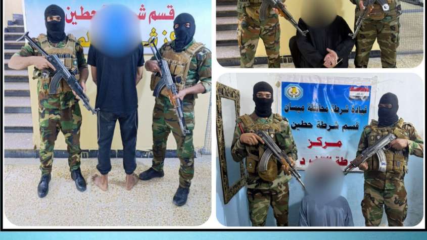 أعلنت قيادة شرطة ميسان، أن مفارز قسم شرطة حطين وبالاشتراك مع الأجهزة الأمنية والاستخبارية ضمن قاطع المسؤولية، تمكنت خلال اليومين الماضيين من إلقاء القبض على ثلاثة متهمين وفق مذكرات قبض أصولية.
