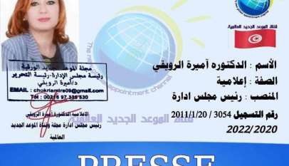 باسم صحيفتنا ومجلتنا وقناتنا الموعد الجديد العالمية ورئيسة مجلس الادارة والتحرير الاعلامية الدكتورة ٱميرة الرويقي وسفيرة السلام بمنظمة الأمم المتحدة وكافة فريق العملانطلاقا من تونس الخضراء الدكتور محمد الناصر بلحاج خائفة مدير مكتب مدينة قابلية البحرية الساحرة الجمال وصولا الى ومصر نائب رئيسة التحرير الأعلامي الدكتور احمد حمزة…