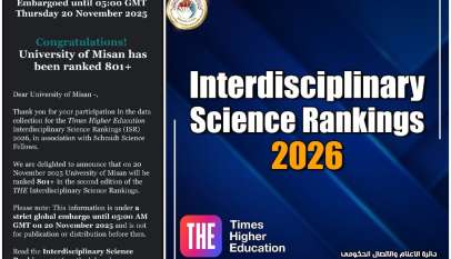 العراق مكتب بغداد/رئيس جامعة ميسان يعلن دخول الجامعة لاول مرة في تصنيف التايمز العالمي ضمن تسلسل *801+