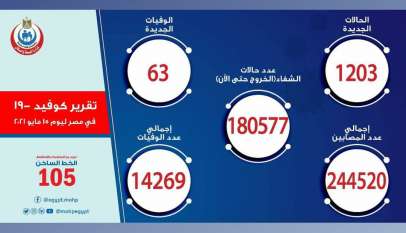 أكمل القراءة »مصر/الصحة:إرتفاع حالات الشفاء من كوفيد 19. وخروجهم من المستشفيات 180577