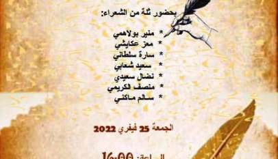 تونس/جندوبة :كتبت أميرة قارشي جندوبة:الدورة الاولى لـ”ملتقى الشعر”بالوسط الطلابي في اطار حرصه على تأسيس تظاهرات ثقافية تتماهى مع المواهب الطلابية ينظّم المركز الجامعي للتنشيط الثقافي والرياضي بجندوبة والذي تشرف على ادارته الاستاذة منية البوسليمي فعاليات الدورة التأسيسية الاولى لـ”ملتقى الشعر”وذلك مساء اليوم 25 فيفري الجاري بمقرّ المركز المنظّم يفتتح الملتقى…