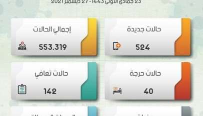 مكتب السعودية / تسجيل 524حالة إصابة بالكورىنا